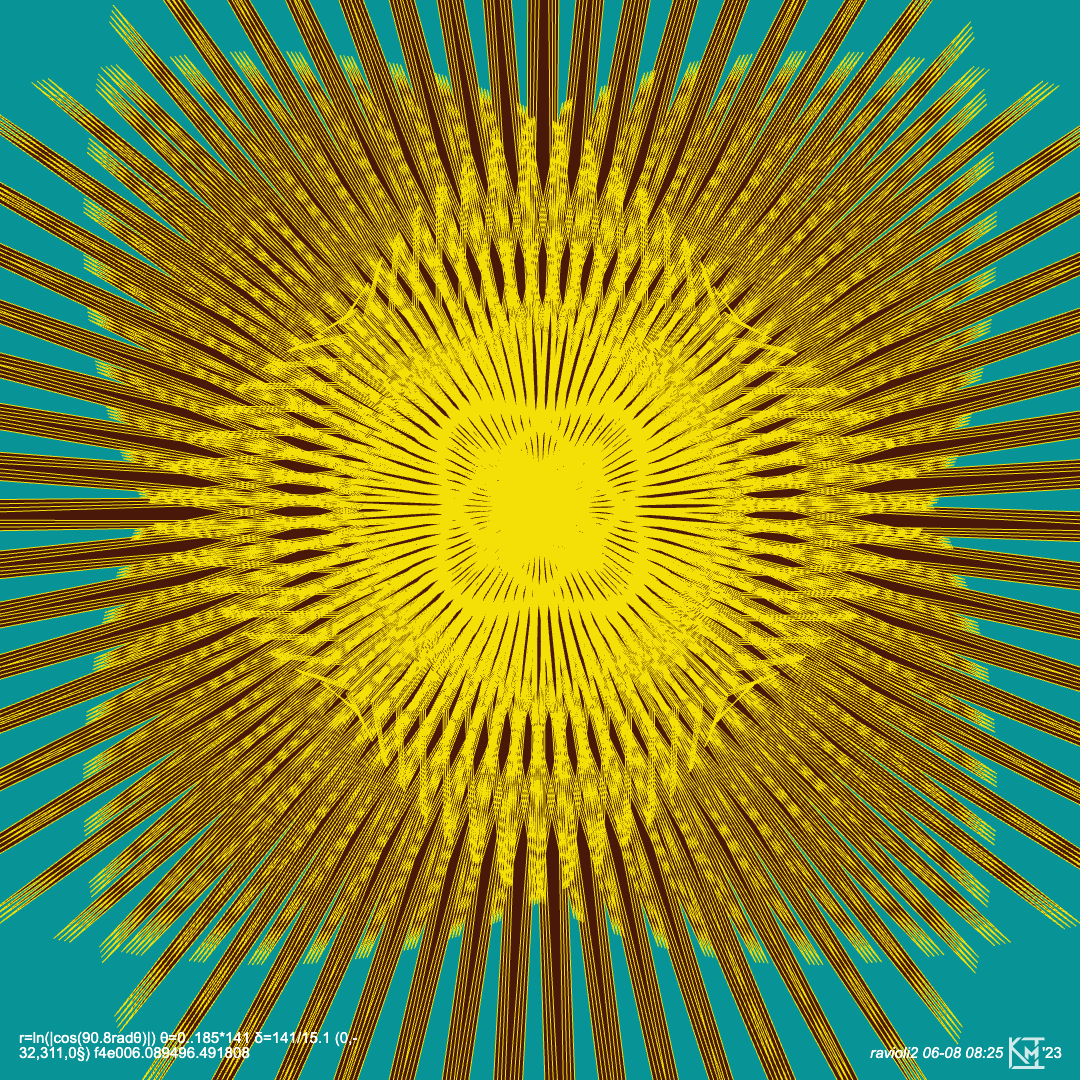 Yellow rayed, ravioli like thing on green